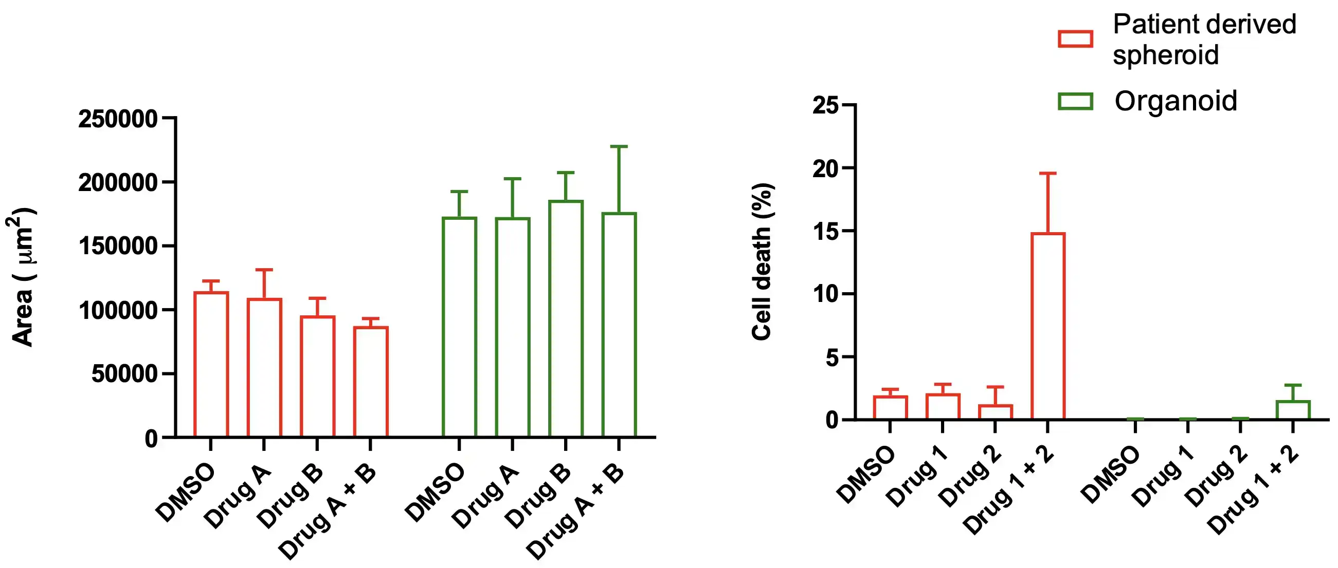 Our drug testing services allow us to evaluate compounds against brain tumours in a relevant neural environment. We create tumour spheroids from human glioblastoma cells that are either patient-derived or cell line-based.